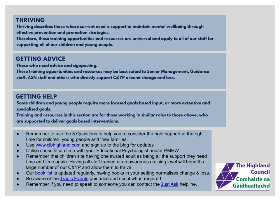 Over the summer we have pulled together training opportunities, resources and guidance relating to change and loss. Some of these are training that we can offer you, and others are things that you can access independently or signpost children, young people and their families to.